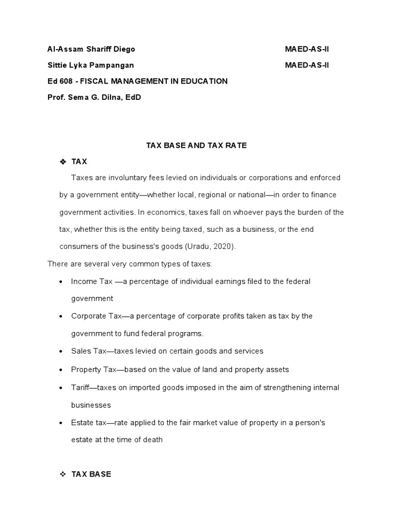 Tax Base Tax Rtae PDF Tax Rate Taxes