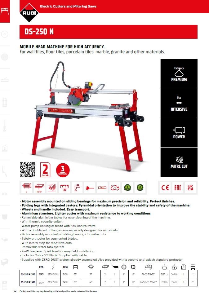 Rubi Tools DCX250 Xpert 1250 49in Tile Saw 52962 Acme Tools