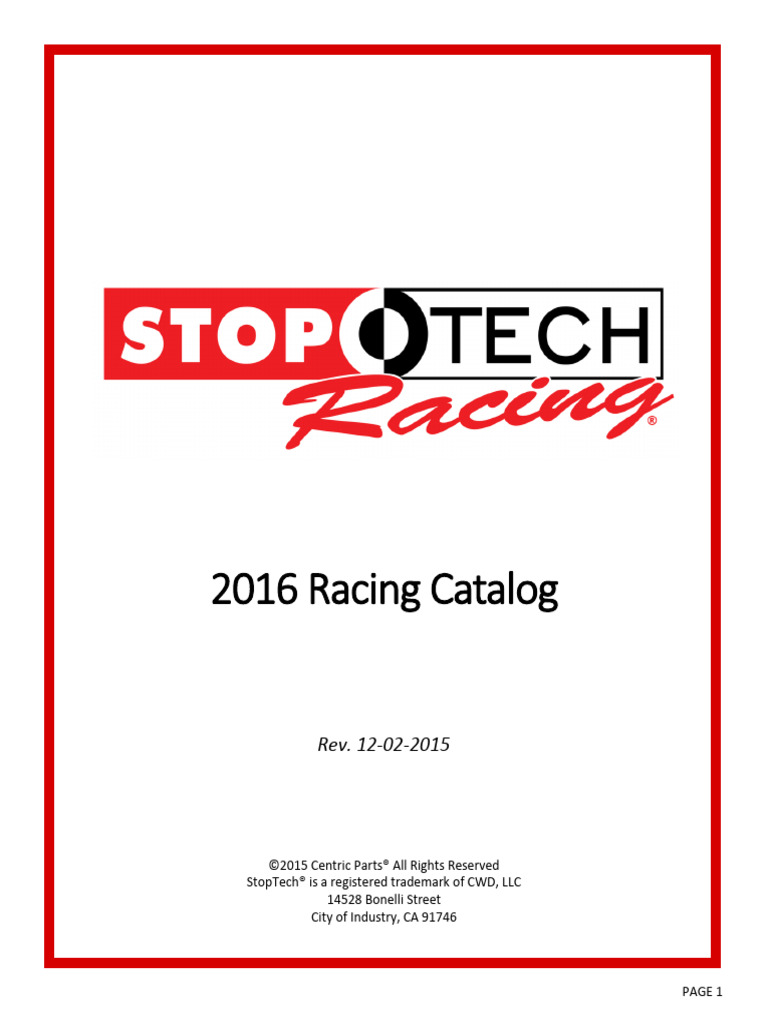 StopTech Racing Catalog PDF Brake Vehicle Technology