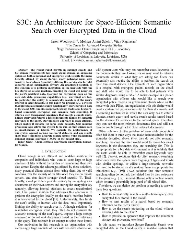 S3C An Architecture For SpaceEfficient Semantic Search Over Encrypted