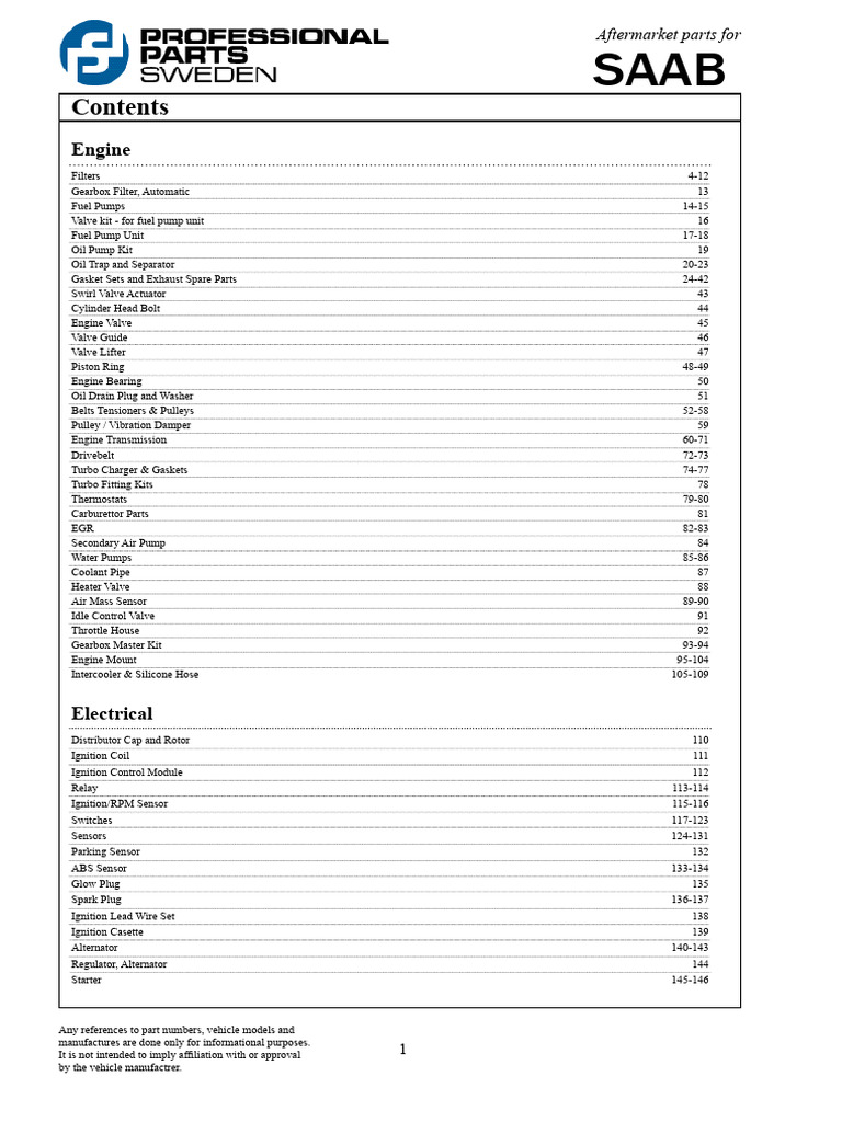 SAAB Catalog PDF Ignition System Vehicles