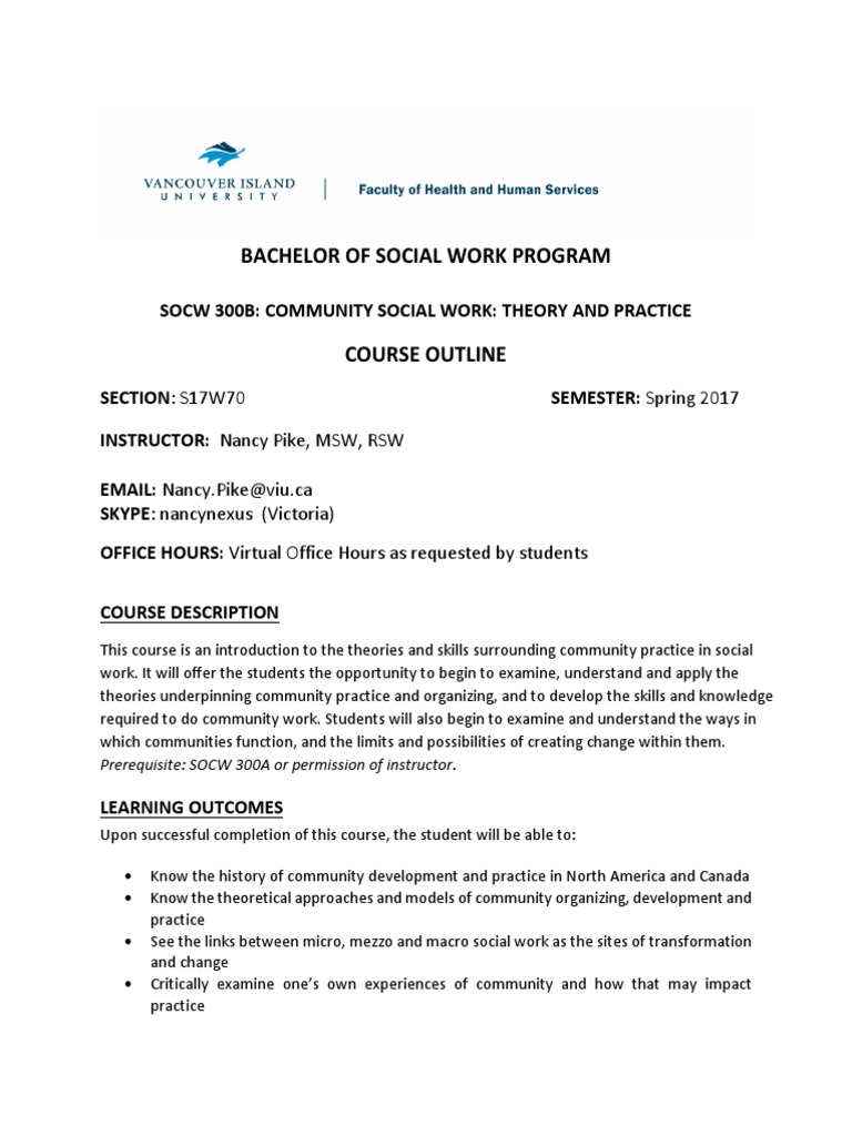 Bachelor of Social Work Program Prerequisite SOCW 300A or Permission