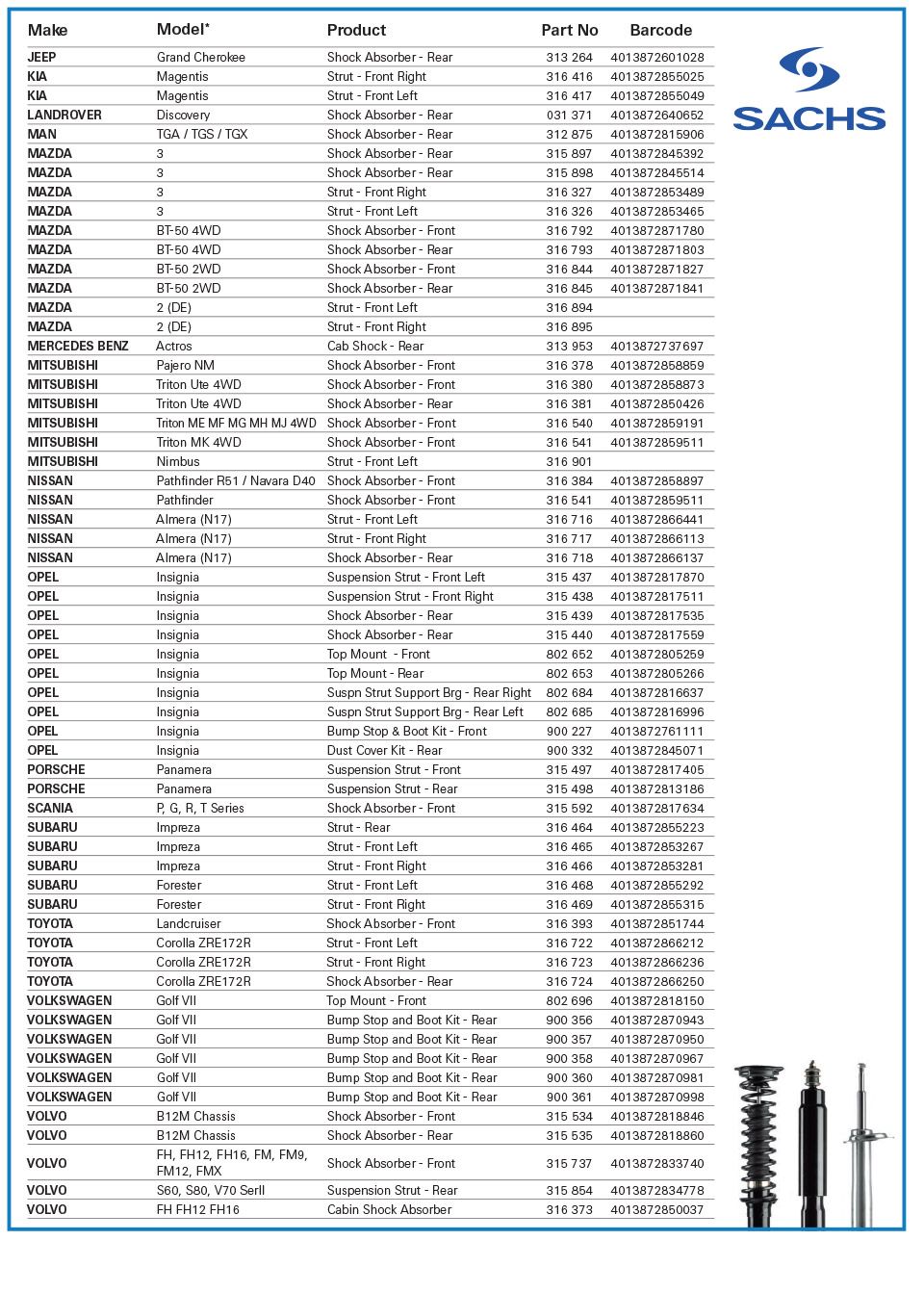 SACHS Catalog Shock absorbers Online Table Vasionmart