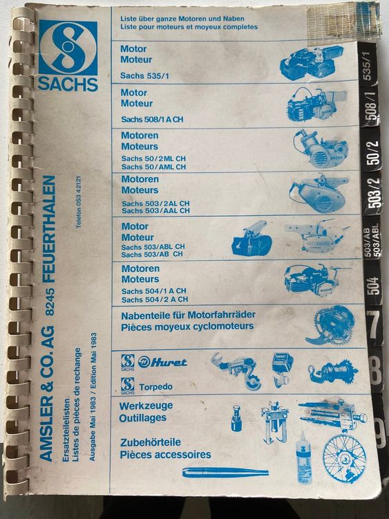Sachs motore 506A GS 1975 catalogo ricambi originale engine spare