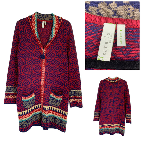 sahalie Sweaters Sahalie Catalog Sz L Longline Fair Isle Cardigan