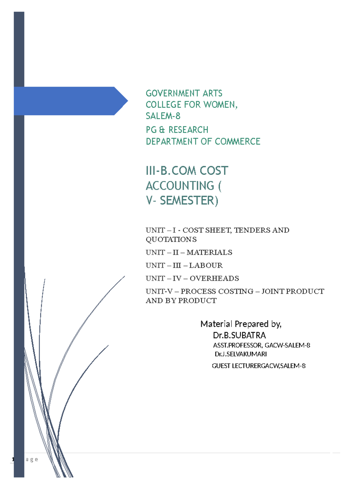 Cost Accounting Notes SVconverted 1 P a g e GOVERNMENT ARTS