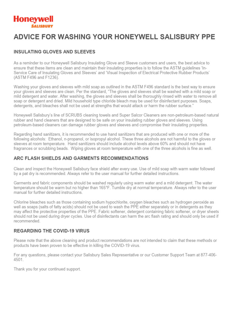 Honeywell Salisbury Cleaning PPE PDF