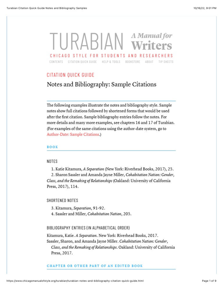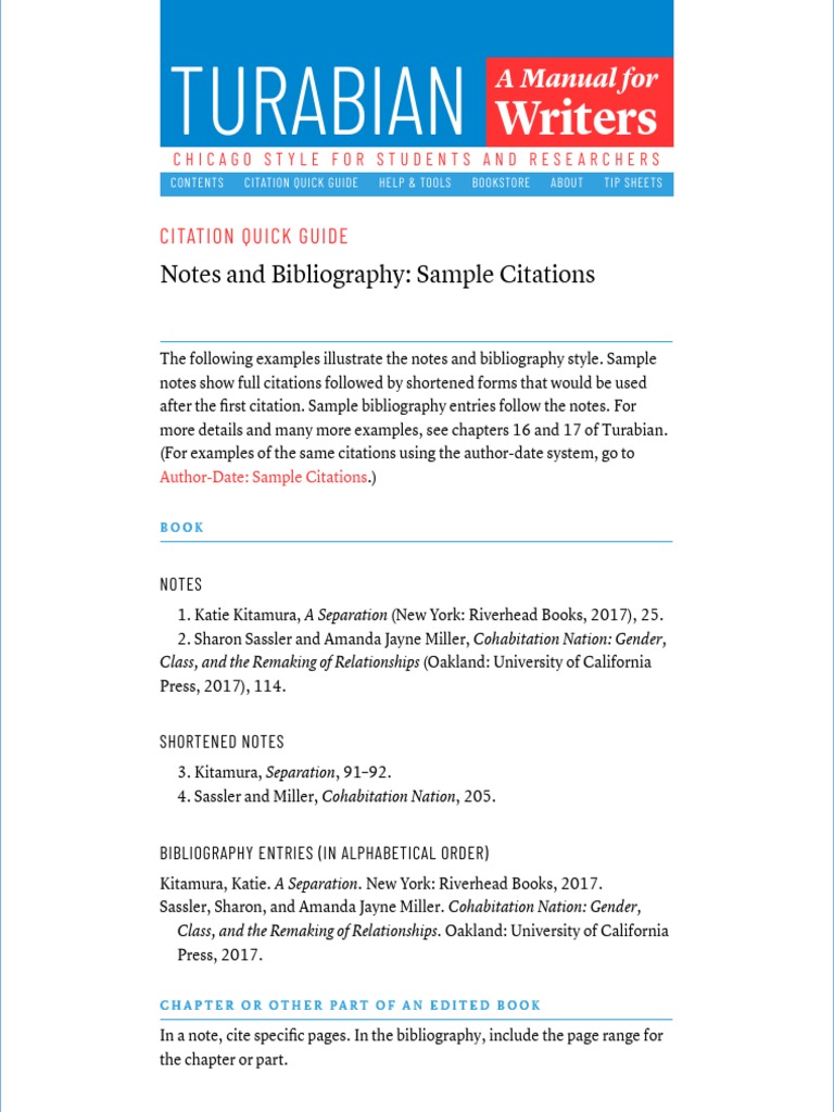 Turabian Citation Quick Guide Notes and Bibliography Samples PDF