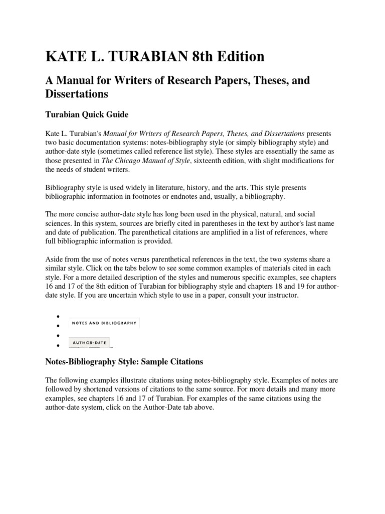 8TH EDITION TURABIAN Quick Guide1 PDF A Manual For Writers Of