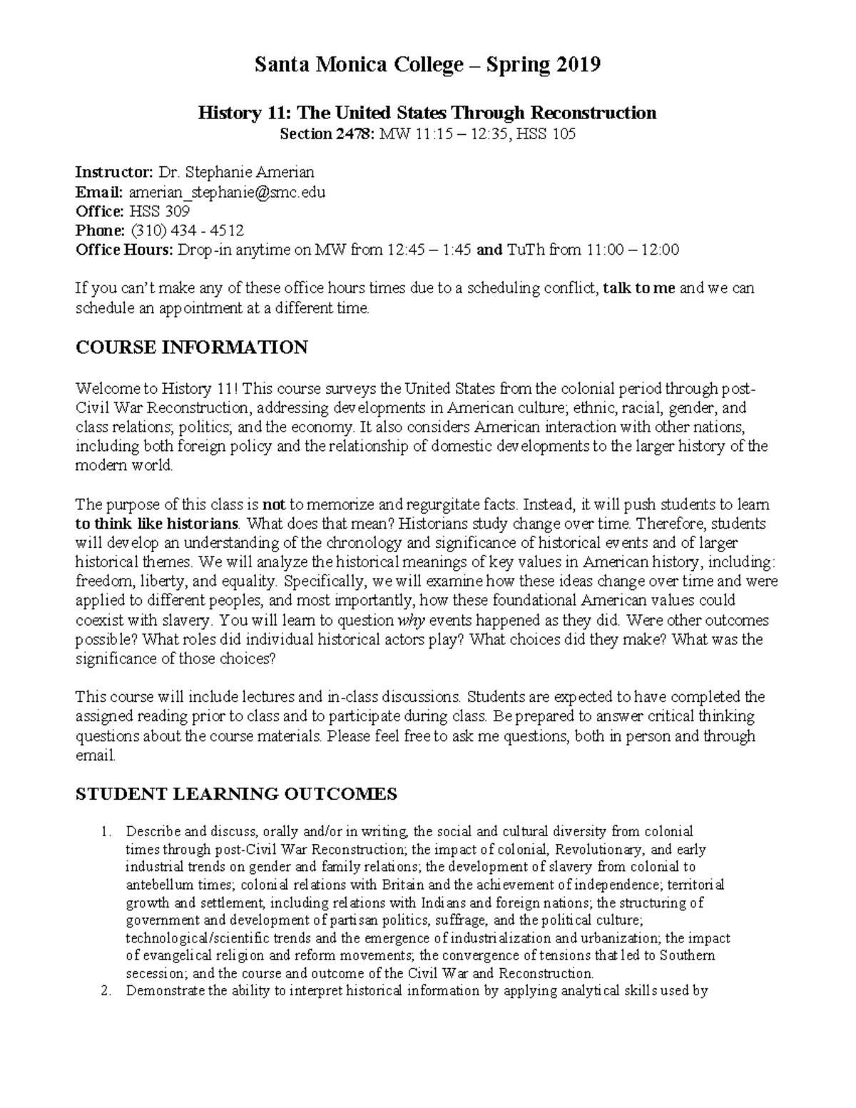 Santa Monica College Course Catalog Spring 2019