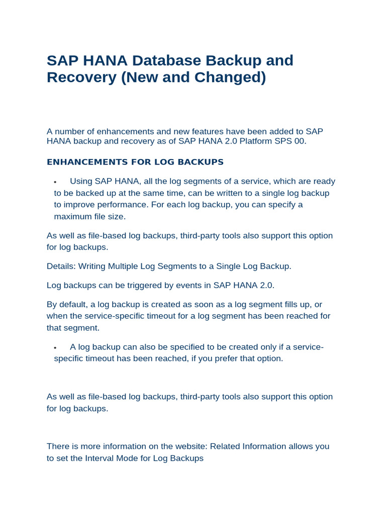 SAP HANA 2.0 SPS 00 What's New Database Backup an... SAP Community