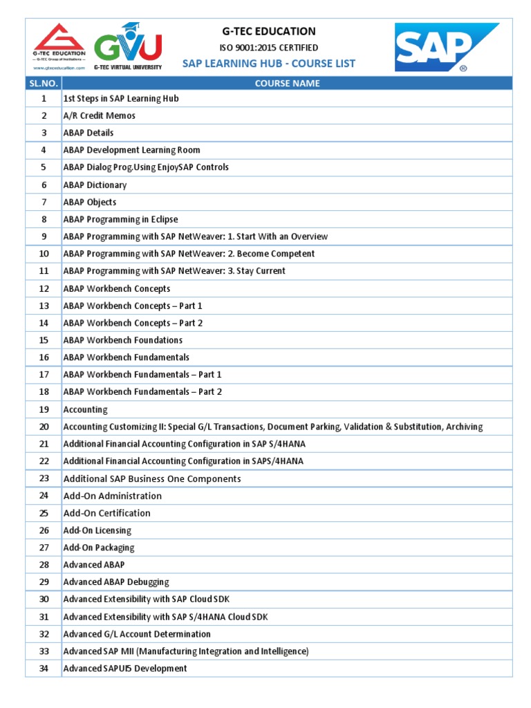 Sap Learning Hub Course List GTec Education PDF Sap Se Cloud