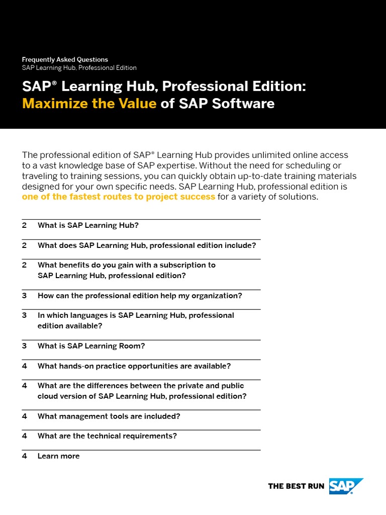 SAP Learning Hub Professional Edition Infosheet PDF