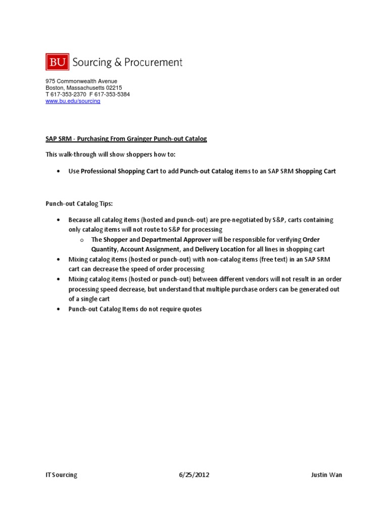 Grainger Punchout Catalog SAP SRM Shopping Cart PDF Computing