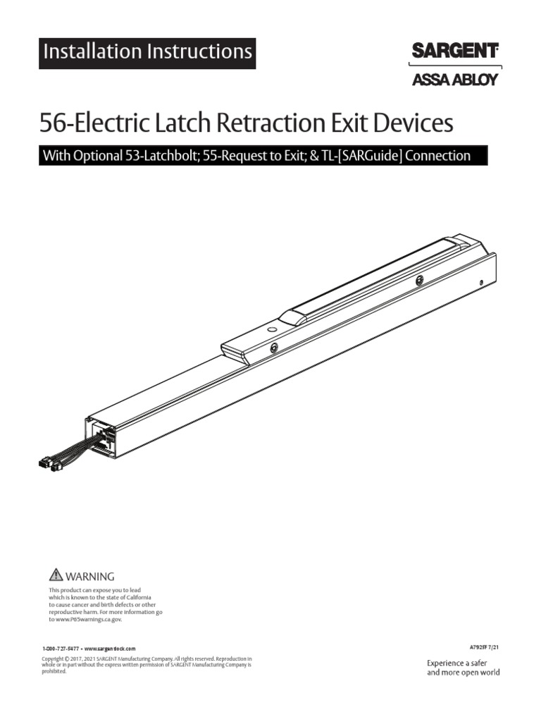 SARGENT Exit Device 80 Series TL 53 55 56 Installation Instructions