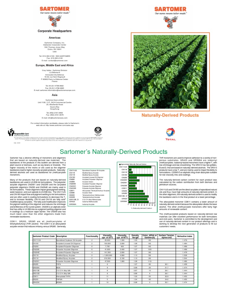 Sartomer Naturally Derived Products PDF Epoxy Polymer Chemistry