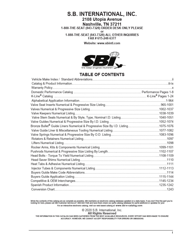SBI & Eloy Valve seats & cylinder head components Catalog