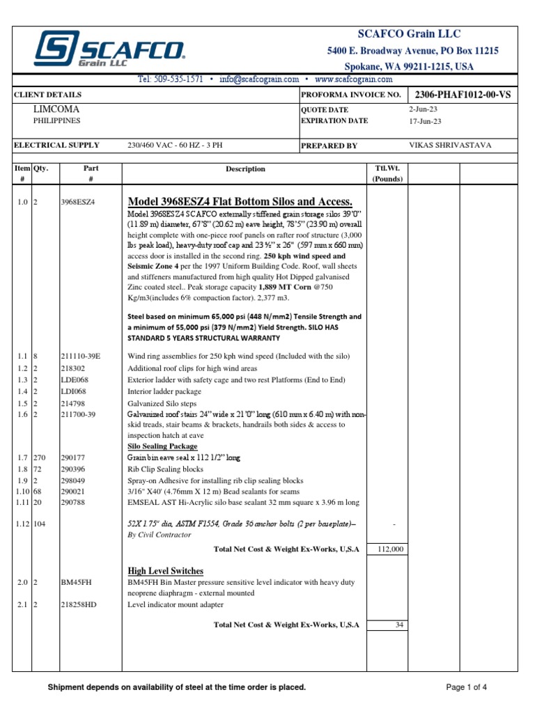 List of Equipment Scafco Quotation 2X1889 MT (3968esz4
