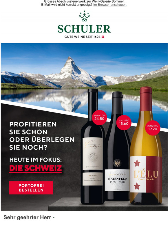 Schuler 20Vorteil auf alle Schweizer Weine Nur Heute gültig. Milled