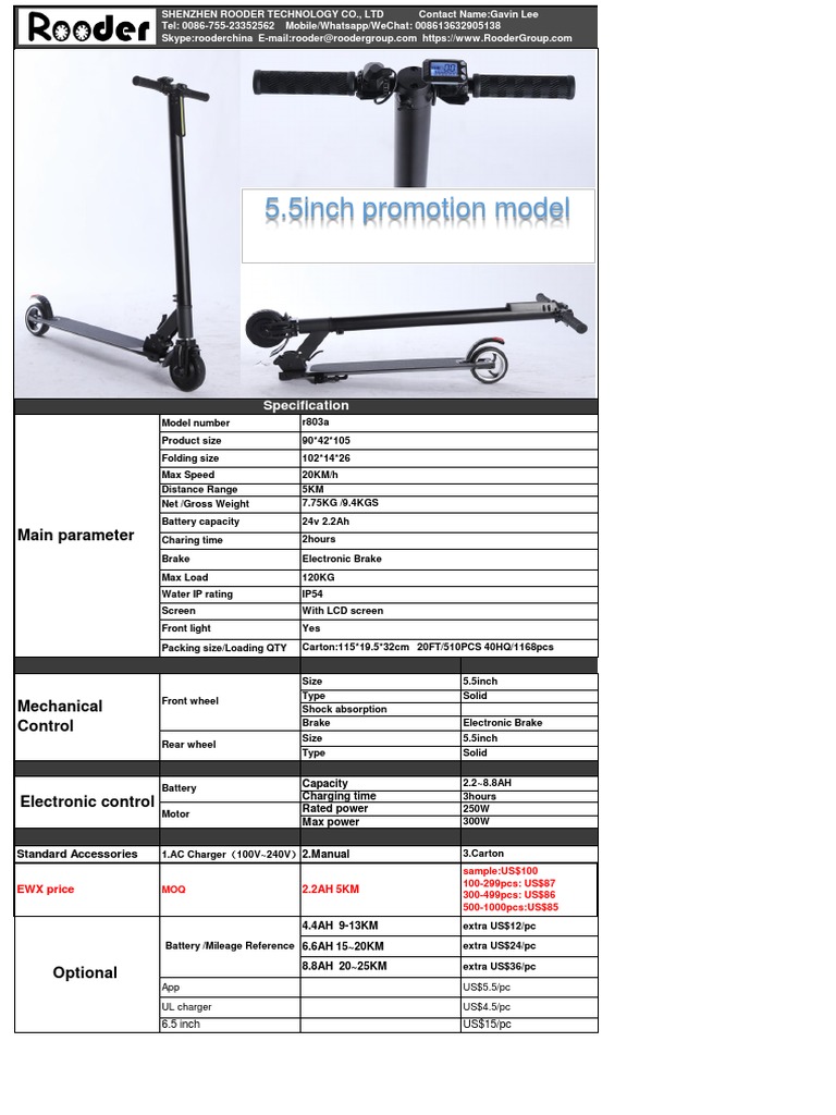 Rooder Kick Scooter Catalog2020 PDF Battery Charger Personal