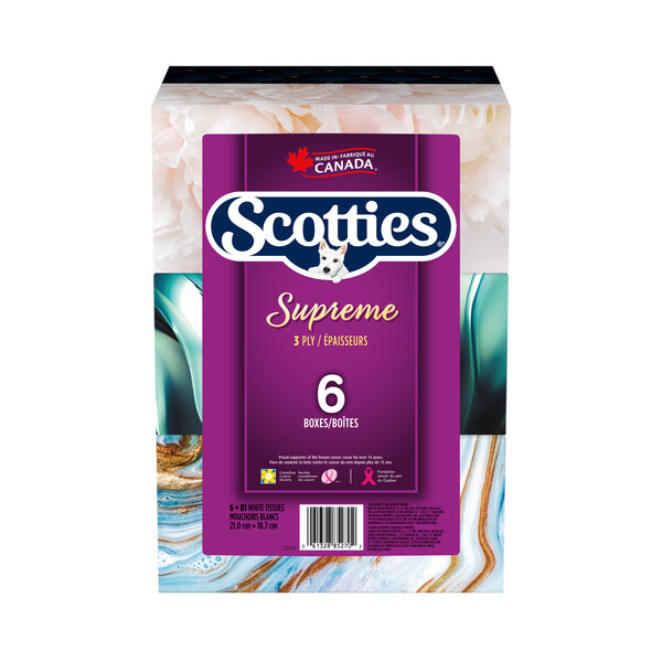 Scotties Supreme Facial Tissue, 3ply, 88 sheets per box 6pk