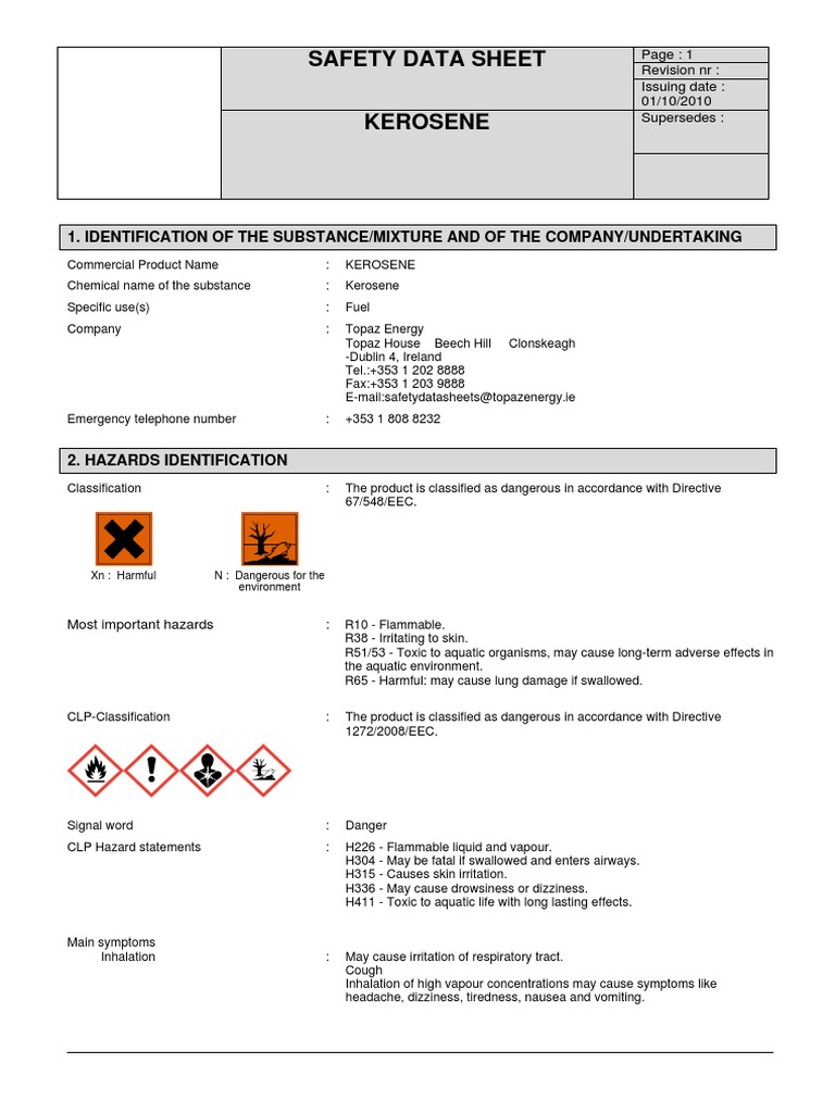 Kerosene SDS Safety Summary PDF Toxicity Personal Protective