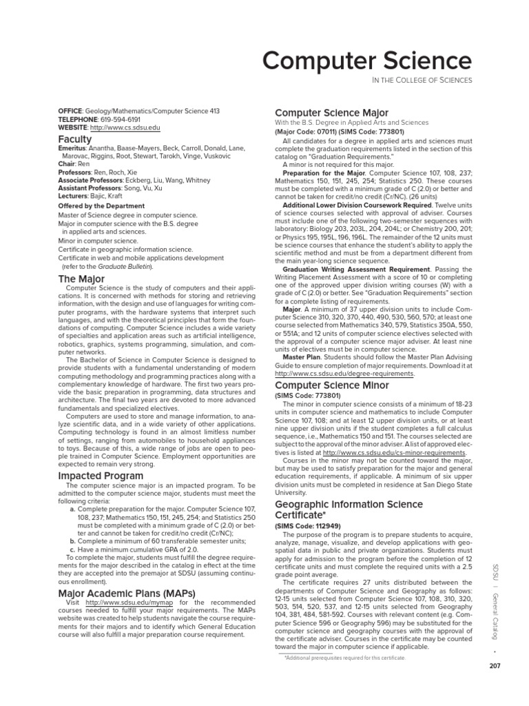 SDSU Computer Science Program Guide PDF Databases Computer