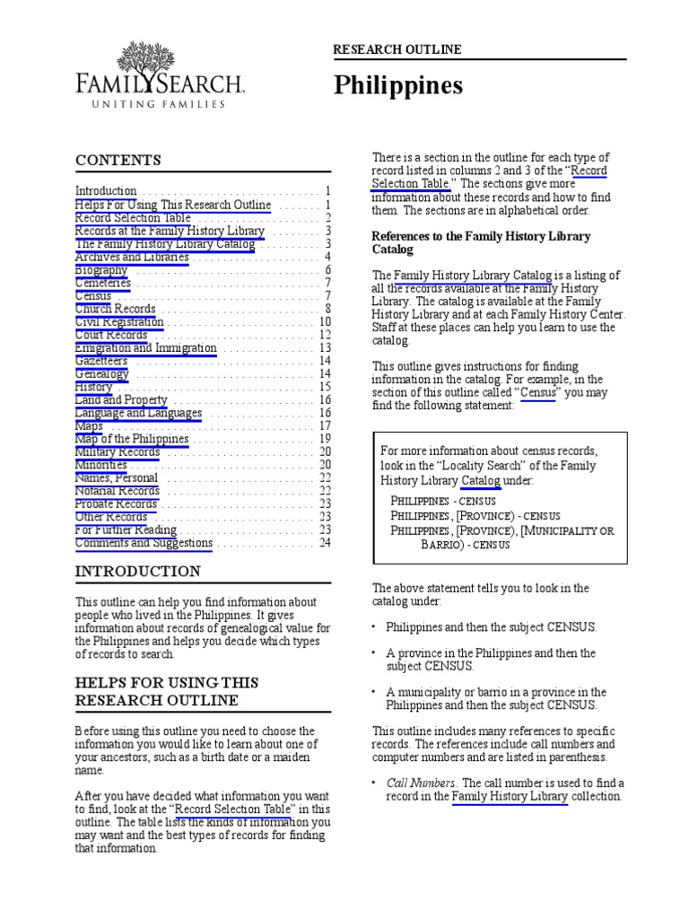 Philippines References To The Family History Library Catalog PDF