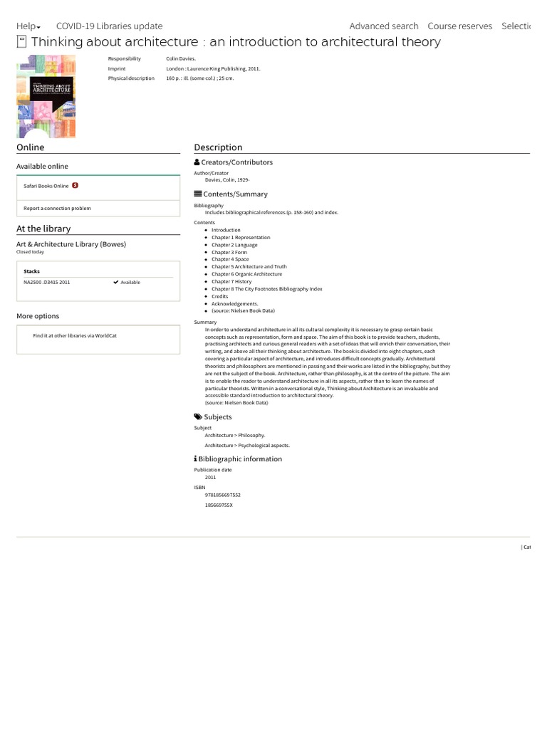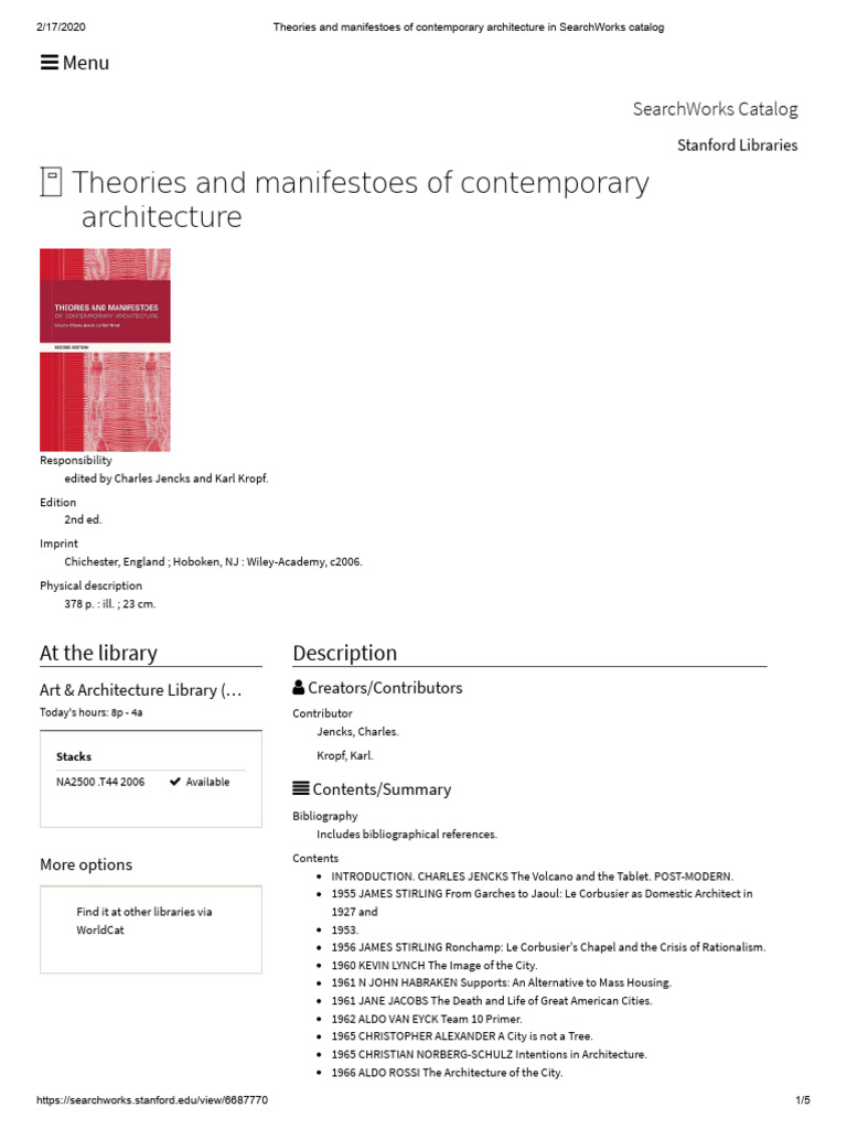 Theories and Manifestoes of Contemporary Architecture in SearchWorks