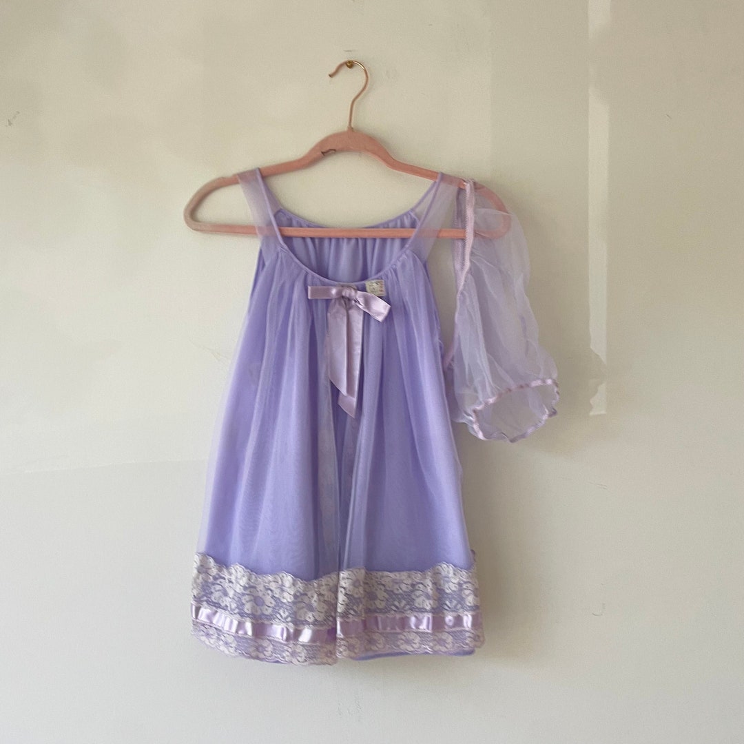 Sears Old Store Stock Vintage 1960's Purple Nylon & Lace Babydoll Set