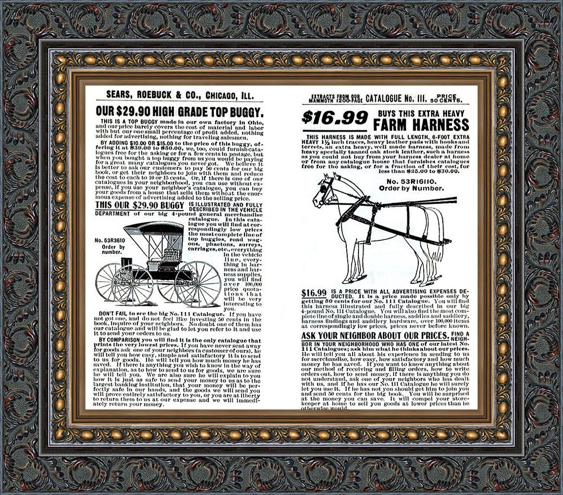 1909 Sears Roebuck Catalogue Page, Buggy Carriage, Horse Farm Harness