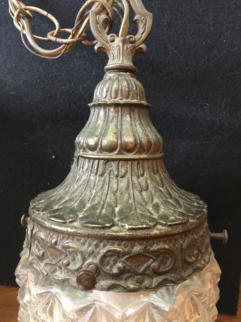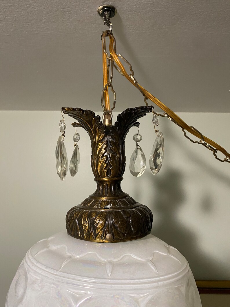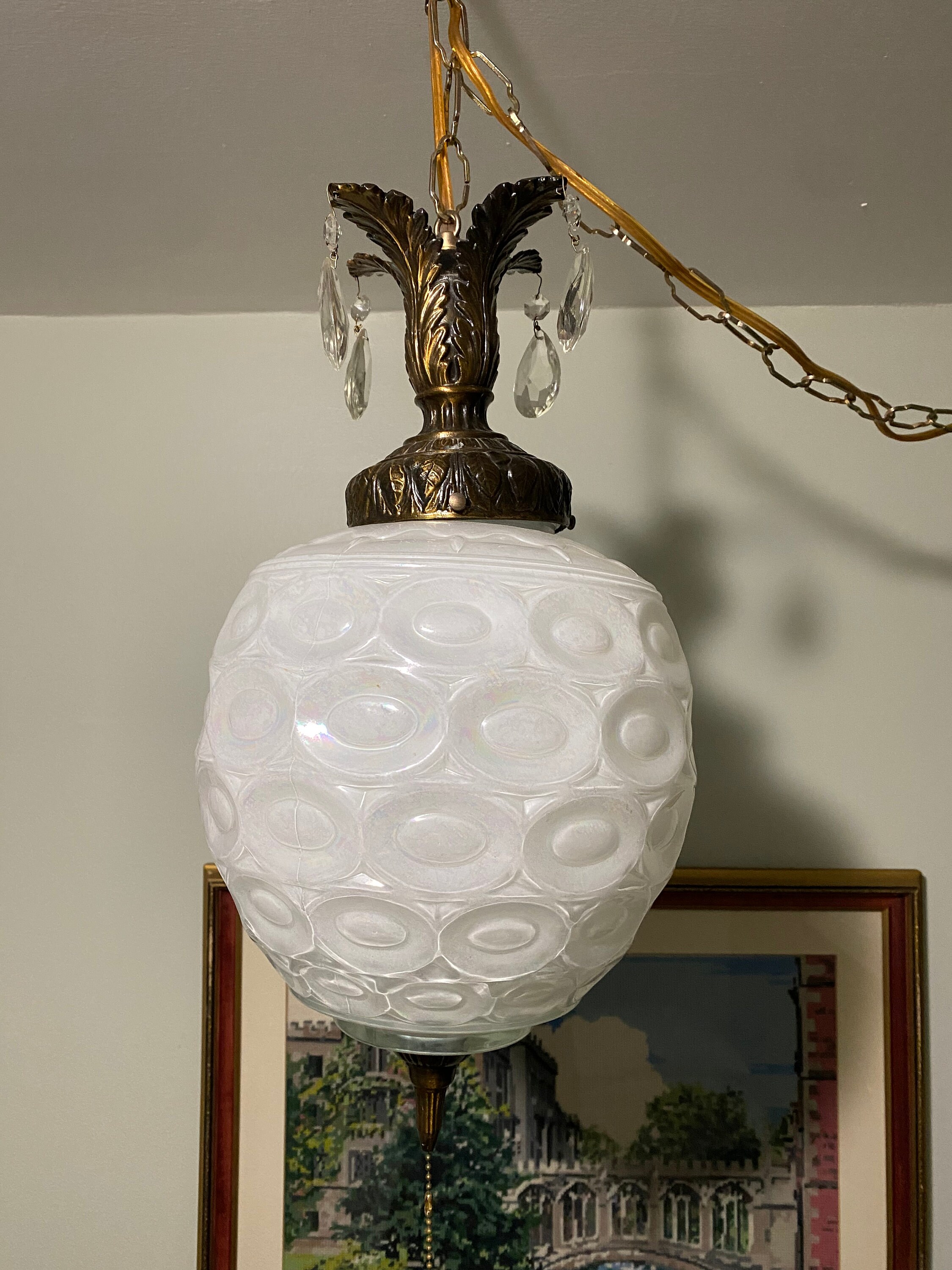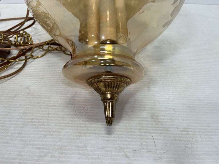 Vintage 1960s Hollywood Regency Style Brass & Glass Swag Lamp Retro
