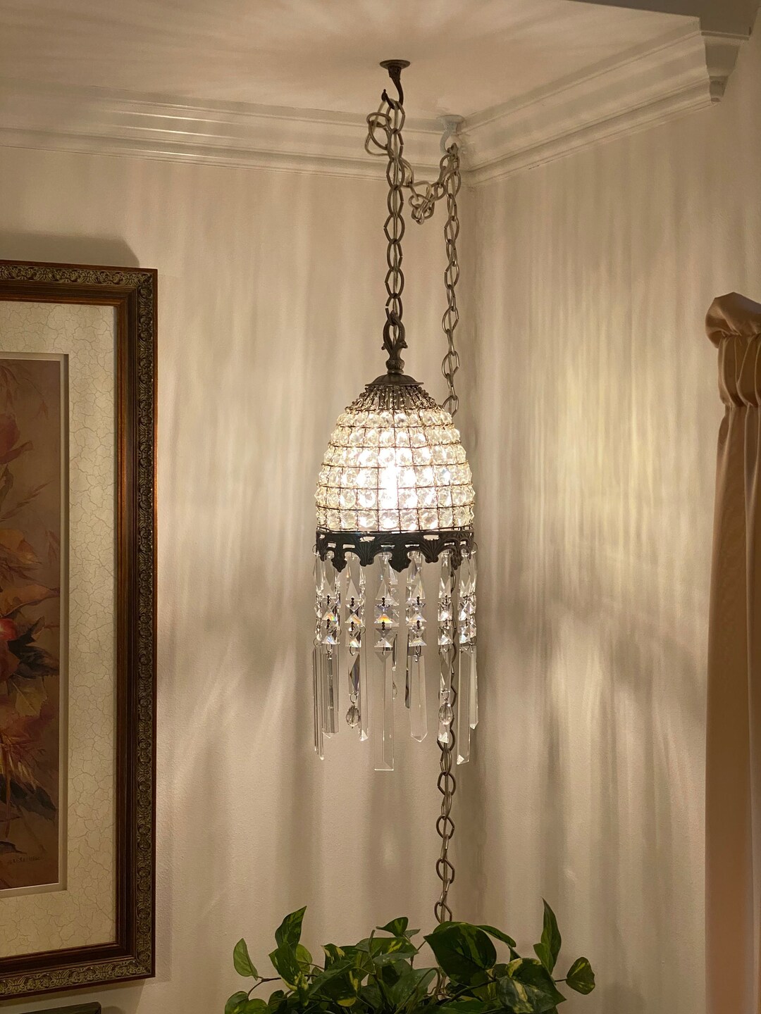 Vintage 1950s/1960s Cut Glass Swag Lamp Etsy