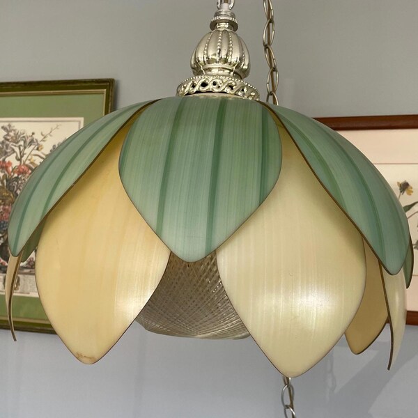 1960s midcentury etched rose retro vintage swag hanging lamp, 23"H