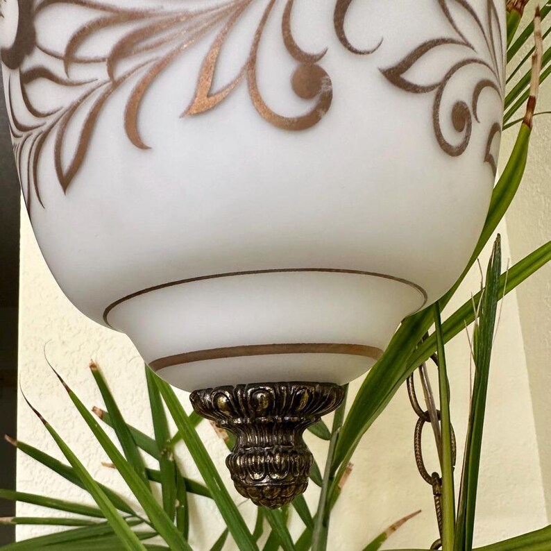 1960s Hanging Swag Light Triple Hurricane Lamp Hand Painted Leaves with