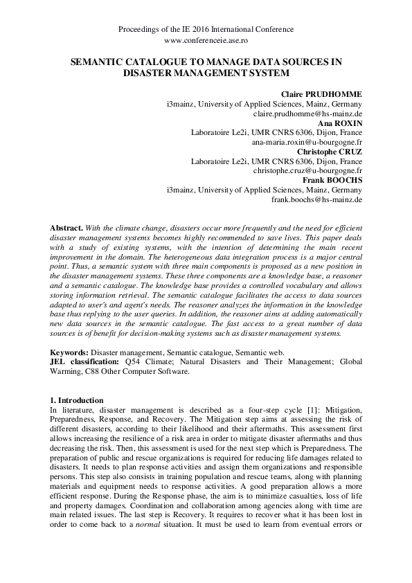 (PDF) Semantic Catalogue to Manage Data Sources in Disaster Management