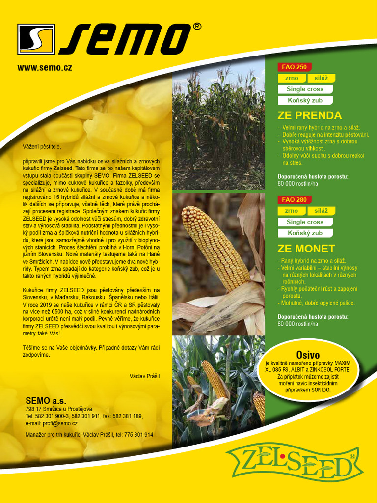 Semo Profi Katalog Zelseed Osivo Kukurice Na Silaz Zrno 2019 2020 PDF