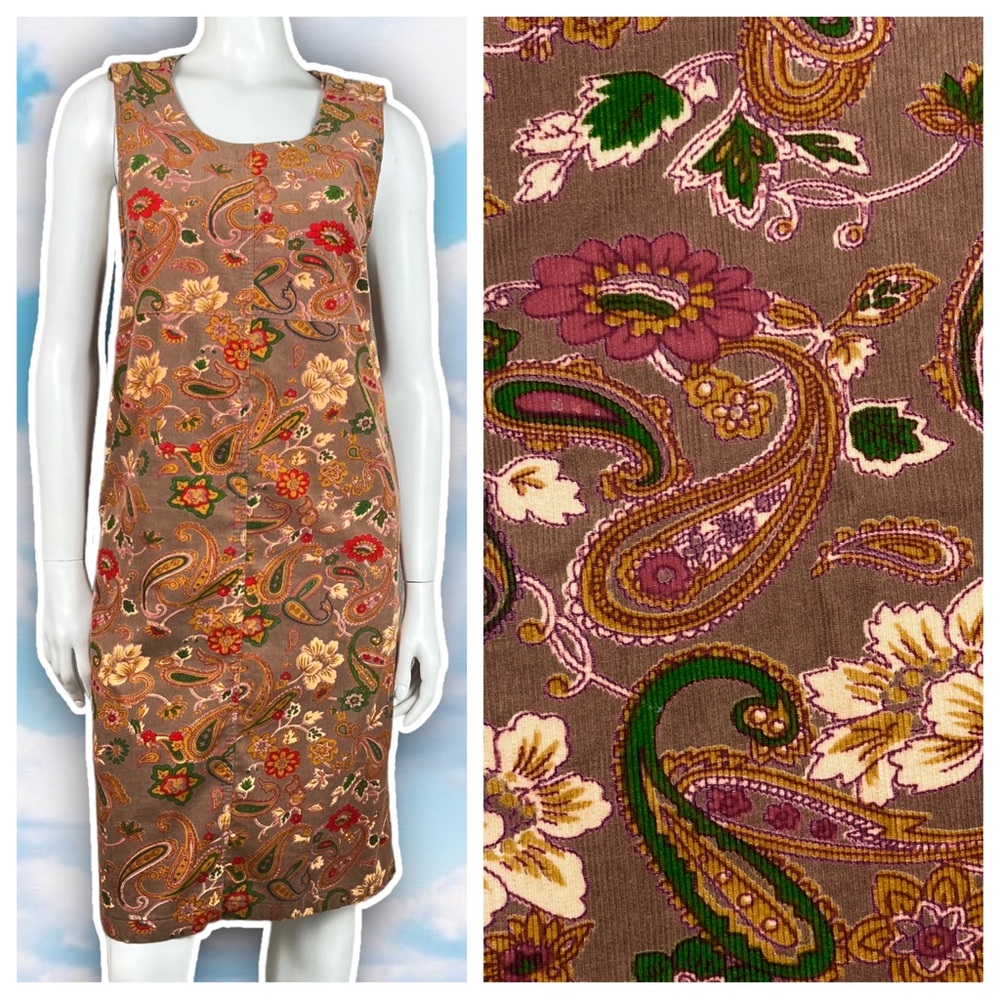 Serengeti Vintage Paisley Floral Corduroy Midi Jumper… Gem