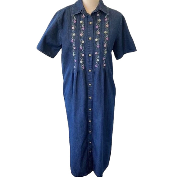 Serengeti Dresses School Teacher Embroidered Denim Dress Jumper