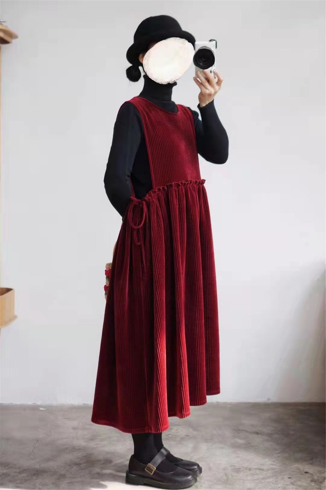 Retro Corduroy Midi Jumper Dress FINAL SALE Cozy dress outfit