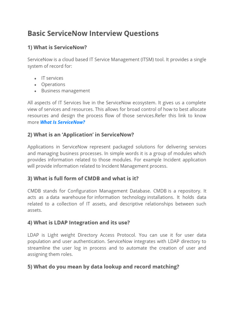 Servicenow Interview Questions PDF Html Computer Data