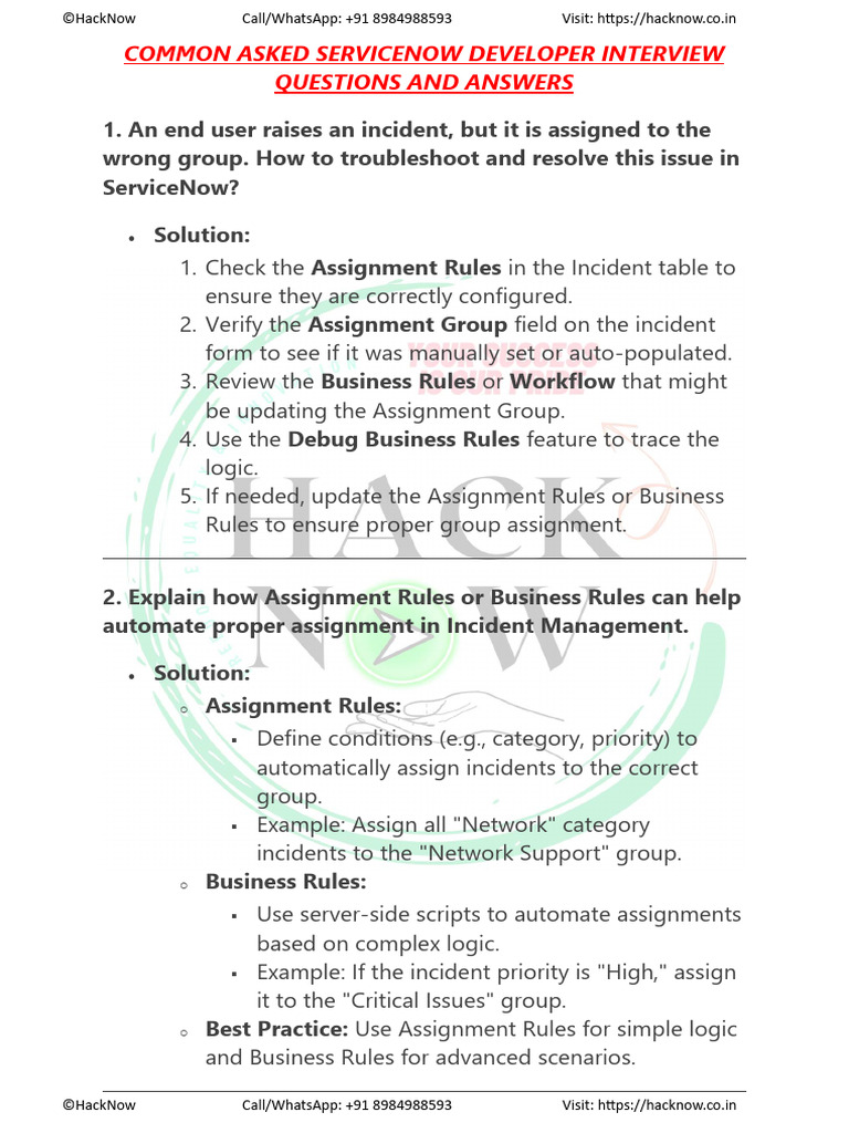 Service Now Interview Questions ServiceNow Interview Questions A