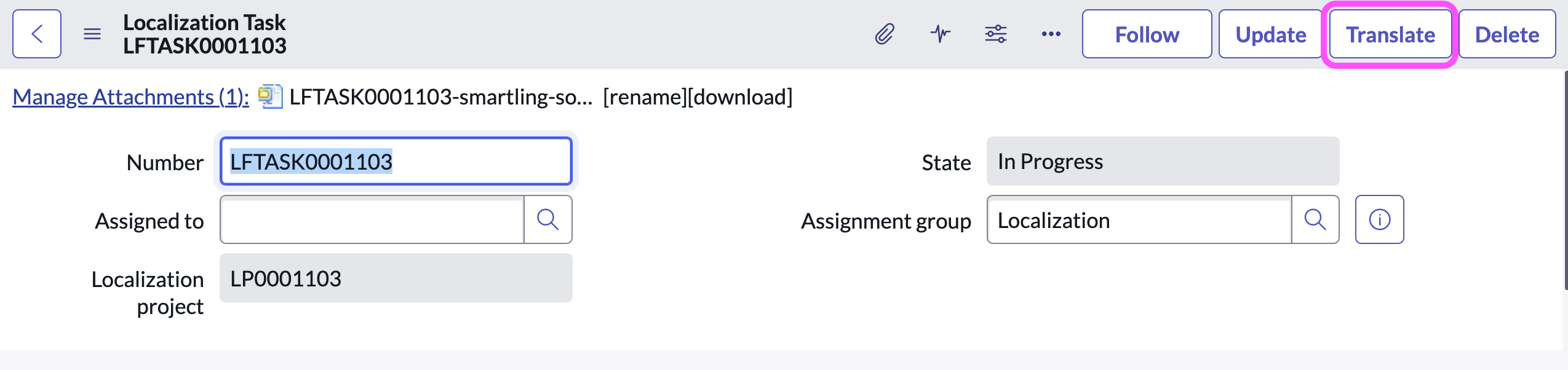 Translating with the ServiceNow Localization Framework Smartling Help