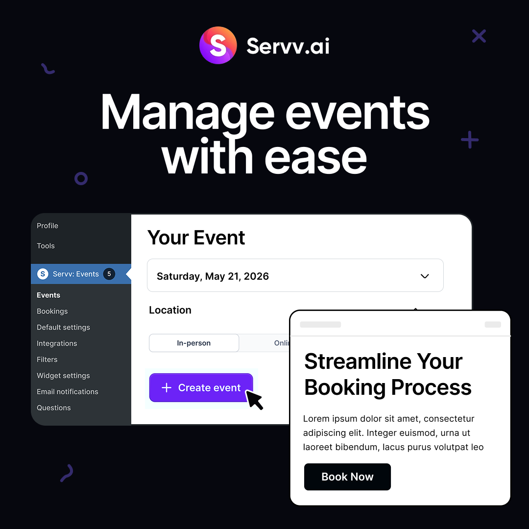 Servv AI AllinOne Event Booking for WordPress & Shopify