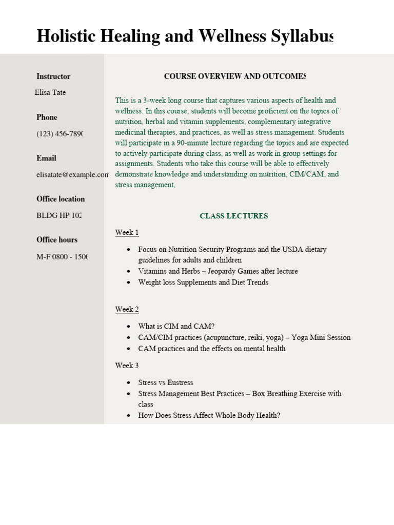 Holistic Healing and Wellness Syllabus PDF Alternative Medicine