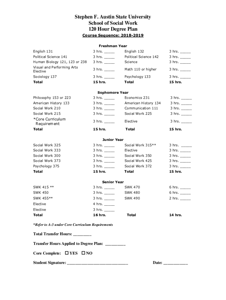 Fillable Online catalog.sfasu.edupreviewprogramBachelor of Social Work