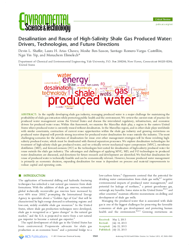 (PDF) Desalination and Reuse of HighSalinity Shale Gas Produced Water