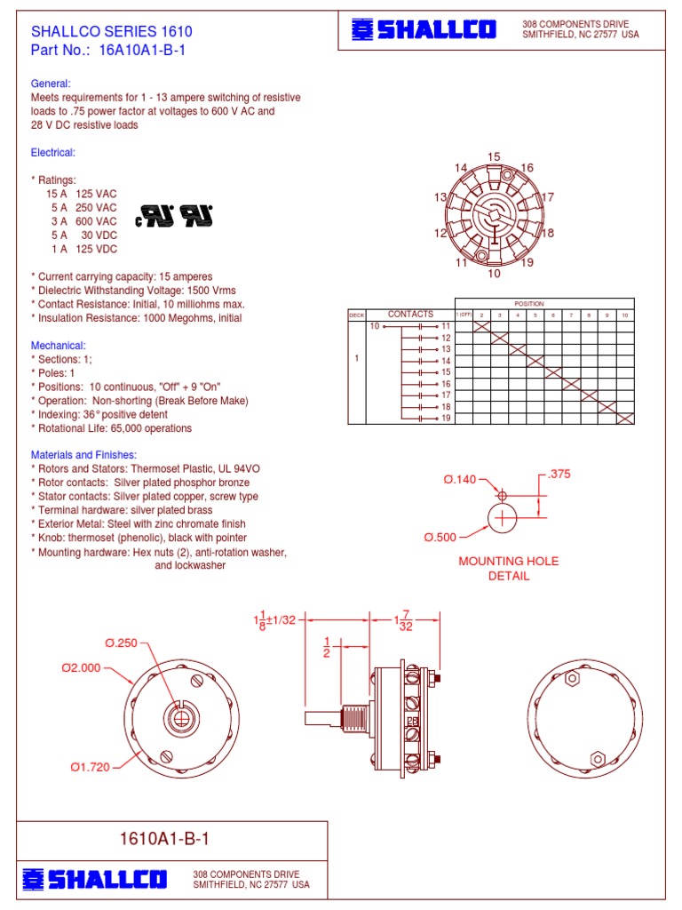 Shallco Series 1610 Part No. 16A10A1B1 General PDF Electrical