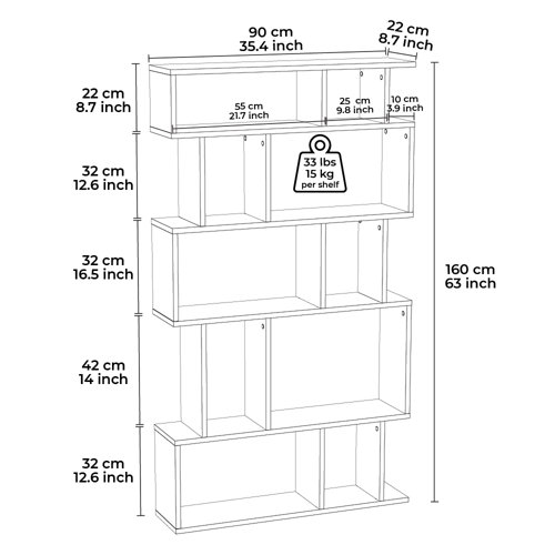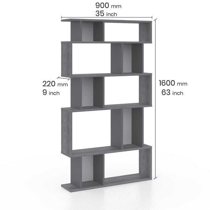 S Shape Bookcase, 5 Tiers Bookshelf, Modern Freestanding Storage