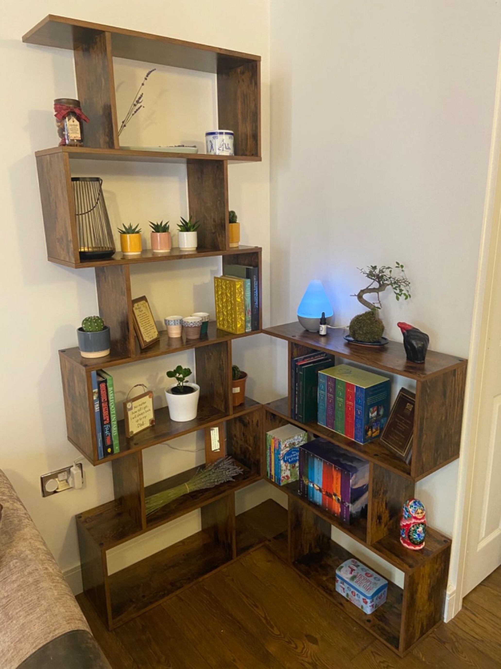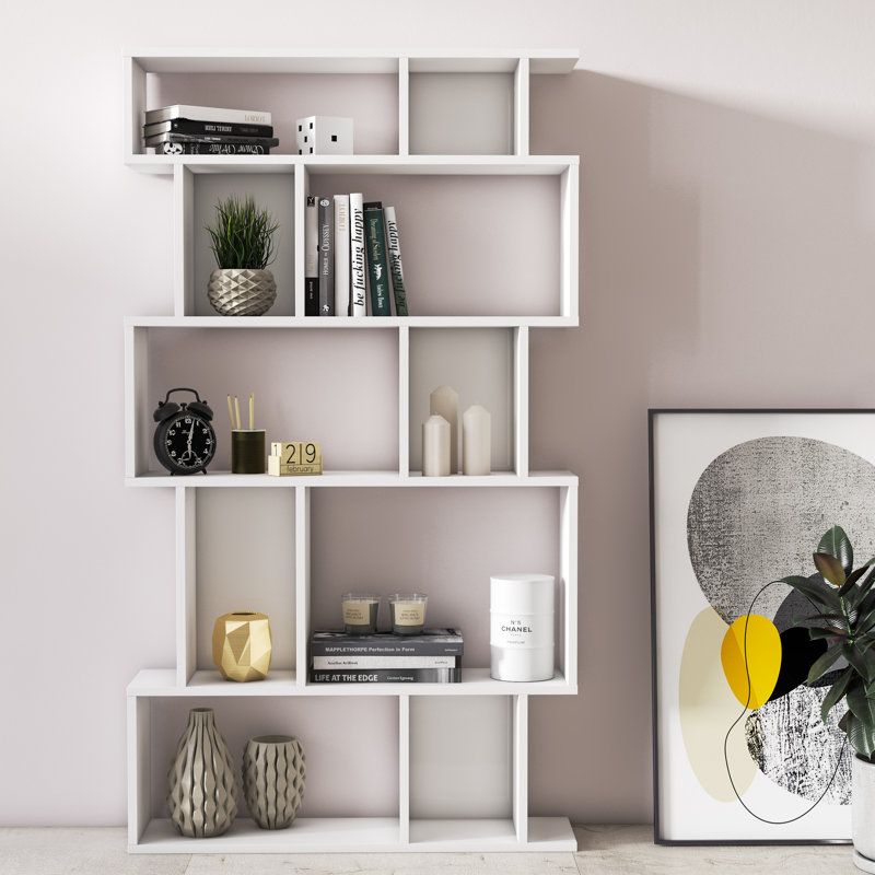 Homfa Geometric Bookcase Wooden Wood S Shape Storage Display Unit